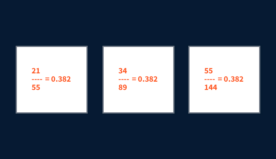 此外,任何数与序列中前面第二位数字的比值总是0.382。